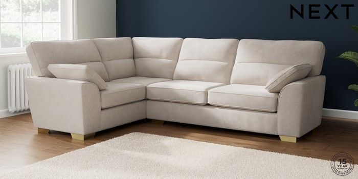 7.2.10 Stamford Highback Large Corner Sofa - Left Hand Chunky Chenille Oyster Large Square Angle - Brushed Brass | Made Click here to use our website with more accessibility support, for example screen readers