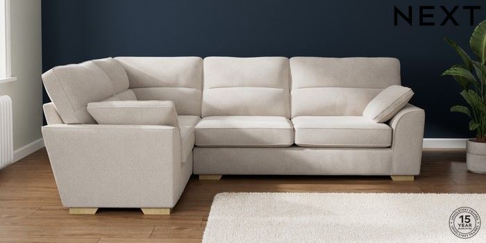 7.2.10 Stamford Highback Large Corner Sofa - Left Hand Chunky Chenille Oyster Large Square Angle - Light | Made Click here to use our website with more accessibility support, for example screen readers