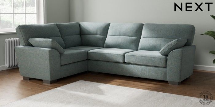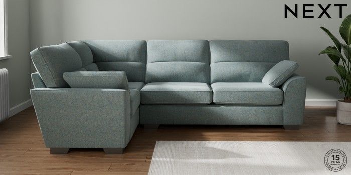 7.2.10 Stamford Highback Large Corner Sofa - Left Hand Chunky Marl Mid Blue Large Square Angle - Gunmetal | Made Click here to use our website with more accessibility support, for example screen readers