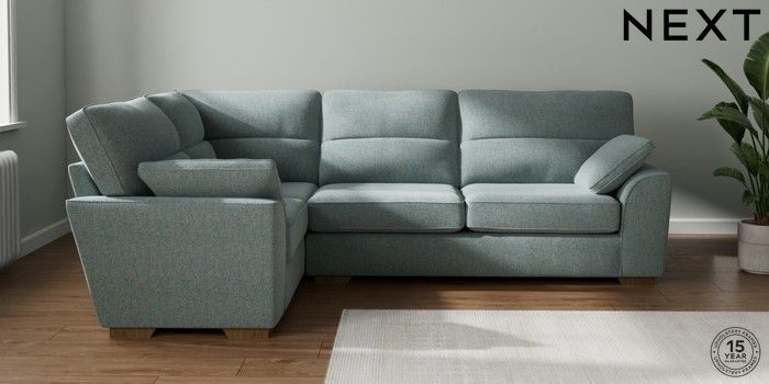 7.2.10 Stamford Highback Large Corner Sofa - Left Hand Chunky Marl Mid Blue Large Square Angle - Mid | Made Click here to use our website with more accessibility support, for example screen readers