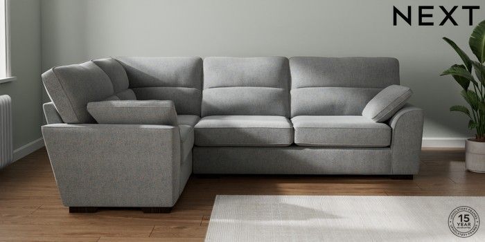 7.2.10 Stamford Highback Large Corner Sofa - Left Hand Chunky Marl Mid Grey Large Square Angle - Dark | Made Click here to use our website with more accessibility support, for example screen readers