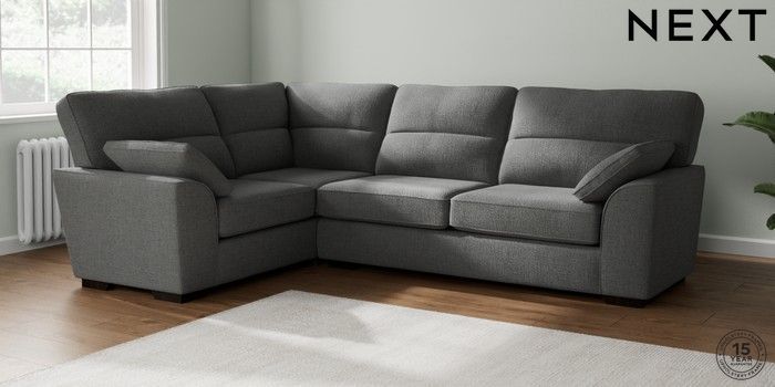 7.2.10 Stamford Highback Large Corner Sofa - Left Hand Chunky Texture Dark Grey Large Square Angle - Dark | Made Click here to use our website with more accessibility support, for example screen readers