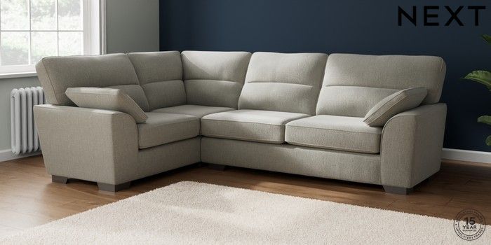 7.2.10 Stamford Highback Large Corner Sofa - Left Hand Chunky Texture Dove Large Square Angle - Gunmetal | Made Click here to use our website with more accessibility support, for example screen readers