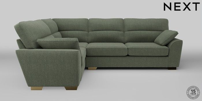 7.2.10 Stamford Highback Large Corner Sofa - Left Hand Chunky Texture Mid Forest Green Large Square Angle - Brushed Brass | Made Click here to use our website with more accessibility support, for example screen readers