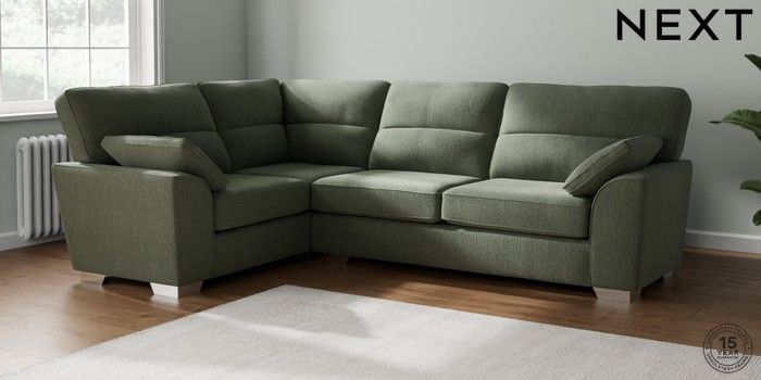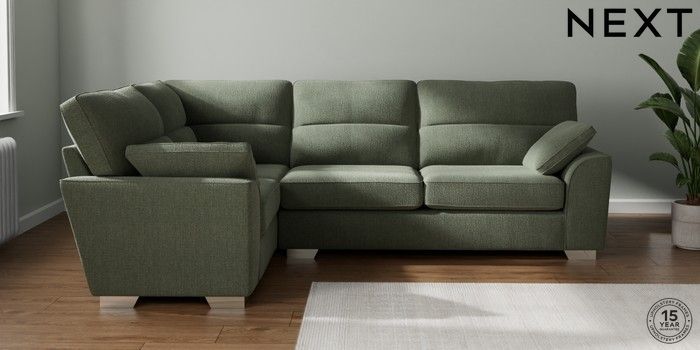 7.2.10 Stamford Highback Large Corner Sofa - Left Hand Chunky Texture Mid Forest Green Large Square Angle - Chrome Metal | Made Click here to use our website with more accessibility support, for example screen readers