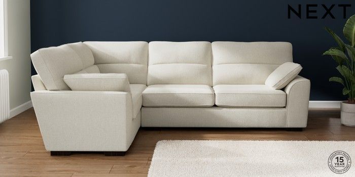 7.2.10 Stamford Highback Large Corner Sofa - Left Hand Chunky Texture Oyster Large Square Angle - Dark | Made Click here to use our website with more accessibility support, for example screen readers