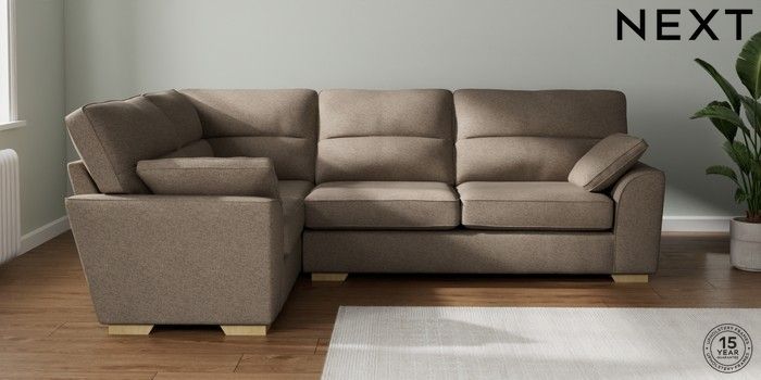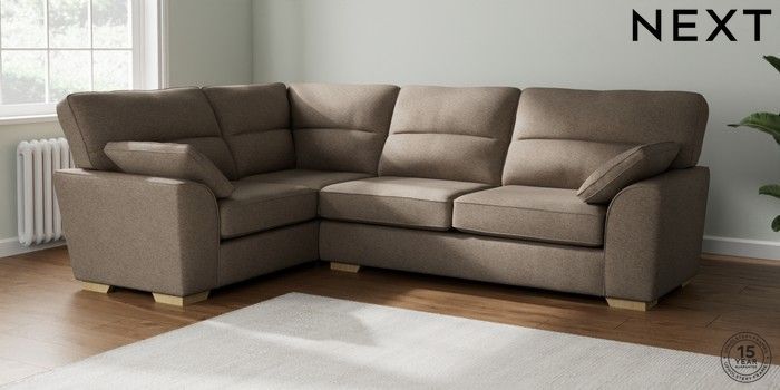 7.2.10 Stamford Highback Large Corner Sofa - Left Hand Chunky Weave Dark Natural Large Square Angle - Light | Made Click here to use our website with more accessibility support, for example screen readers