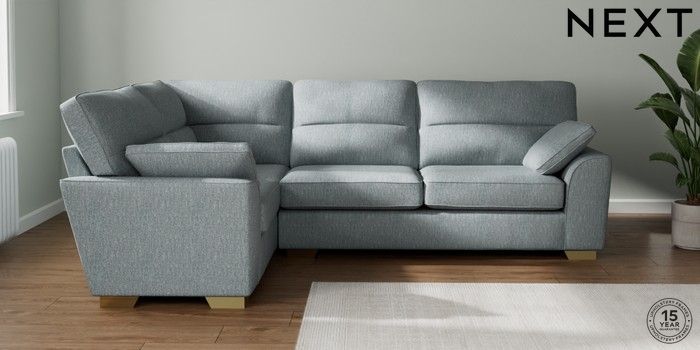 7.2.10 Stamford Highback Large Corner Sofa - Left Hand Chunky Weave Mid Blue Large Square Angle - Brushed Brass | Made Click here to use our website with more accessibility support, for example screen readers