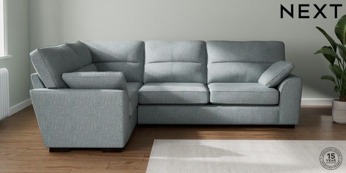 7.2.10 Stamford Highback Large Corner Sofa - Left Hand Chunky Weave Mid Blue Large Square Angle - Dark | Made Click here to use our website with more accessibility support, for example screen readers