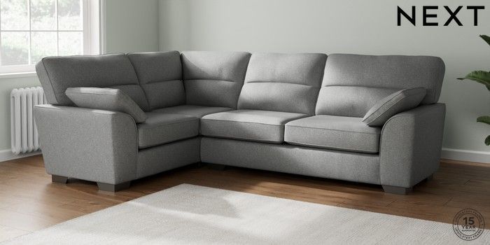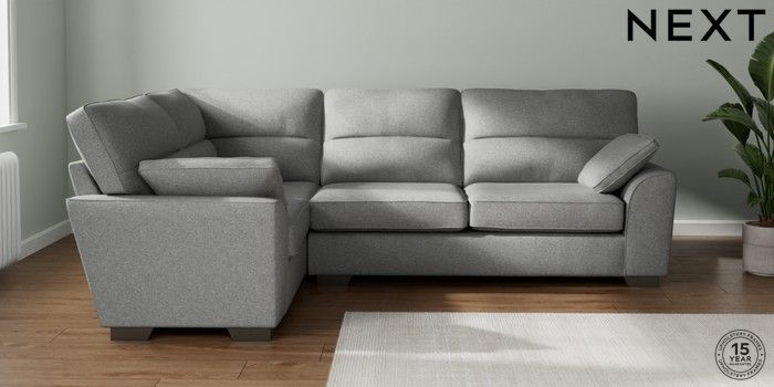 7.2.10 Stamford Highback Large Corner Sofa - Left Hand Chunky Weave Mid Grey Large Square Angle - Gunmetal | Made Click here to use our website with more accessibility support, for example screen readers