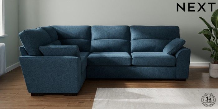 7.2.10 Stamford Highback Large Corner Sofa - Left Hand Cotswold Chenille Dark Blue Large Square Angle - Dark | Made Click here to use our website with more accessibility support, for example screen readers