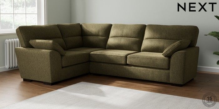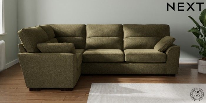 7.2.10 Stamford Highback Large Corner Sofa - Left Hand Cotswold Chenille Dark Green Large Square Angle - Dark | Made Click here to use our website with more accessibility support, for example screen readers