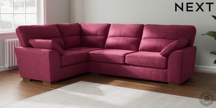 7.2.10 Stamford Highback Large Corner Sofa - Left Hand Cotswold Chenille Dark Raspberry Pink Large Square Angle - Mid | Made Click here to use our website with more accessibility support, for example screen readers