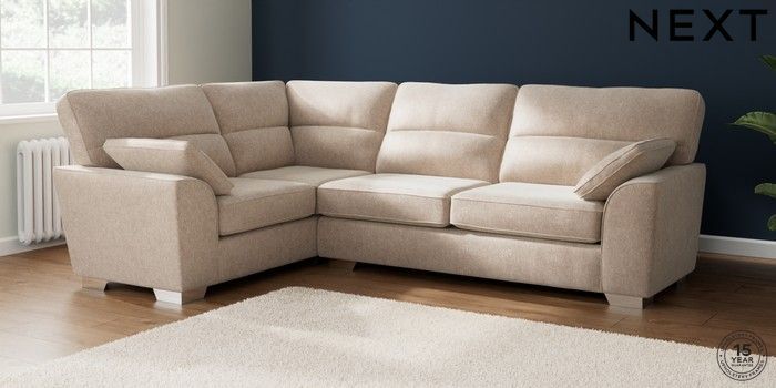7.2.10 Stamford Highback Large Corner Sofa - Left Hand Cotswold Chenille Light Natural Large Square Angle - Chrome Metal | Made Click here to use our website with more accessibility support, for example screen readers