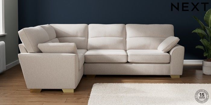 7.2.10 Stamford Highback Large Corner Sofa - Left Hand Cotswold Chenille Oyster Large Square Angle - Brushed Brass | Made Click here to use our website with more accessibility support, for example screen readers