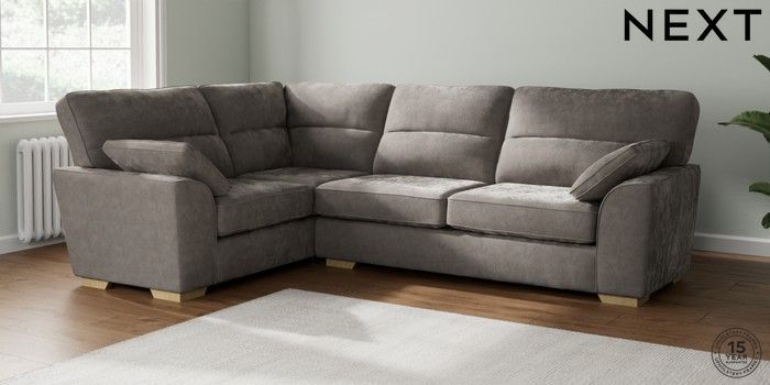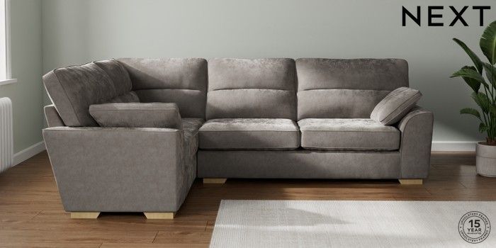 7.2.10 Stamford Highback Large Corner Sofa - Left Hand Distressed Velour French Grey Large Square Angle - Light | Made Click here to use our website with more accessibility support, for example screen readers