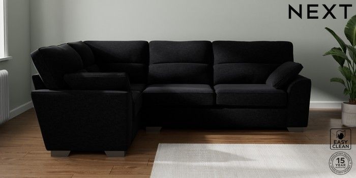 7.2.10 Stamford Highback Large Corner Sofa - Left Hand Fine Chenille Easy Clean Black Large Square Angle - Gunmetal | Made Click here to use our website with more accessibility support, for example screen readers