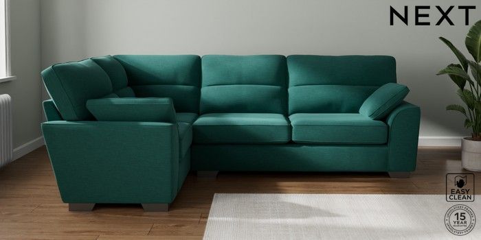 7.2.10 Stamford Highback Large Corner Sofa - Left Hand Fine Chenille Easy Clean Dark Juniper Green Large Square Angle - Gunmetal | Made Click here to use our website with more accessibility support, for example screen readers