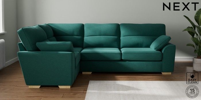 7.2.10 Stamford Highback Large Corner Sofa - Left Hand Fine Chenille Easy Clean Dark Juniper Green Large Square Angle - Light | Made Click here to use our website with more accessibility support, for example screen readers