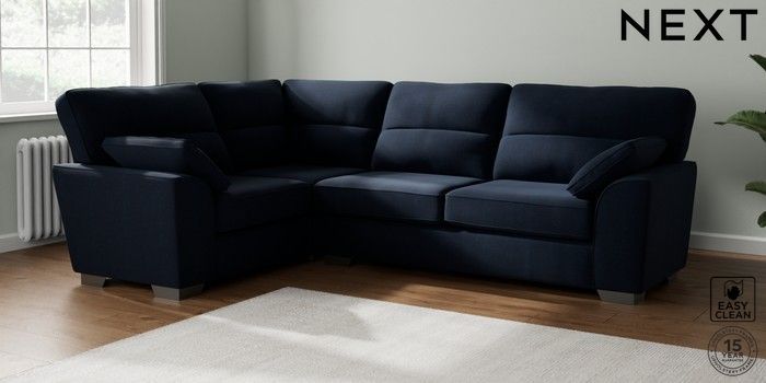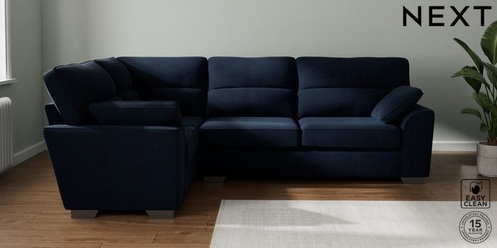 7.2.10 Stamford Highback Large Corner Sofa - Left Hand Fine Chenille Easy Clean Dark Navy Blue Large Square Angle - Gunmetal | Made Click here to use our website with more accessibility support, for example screen readers