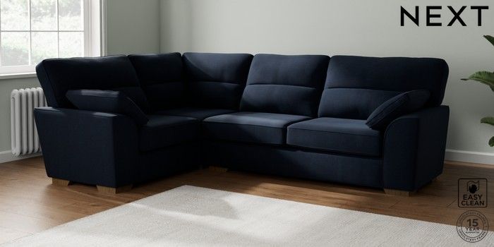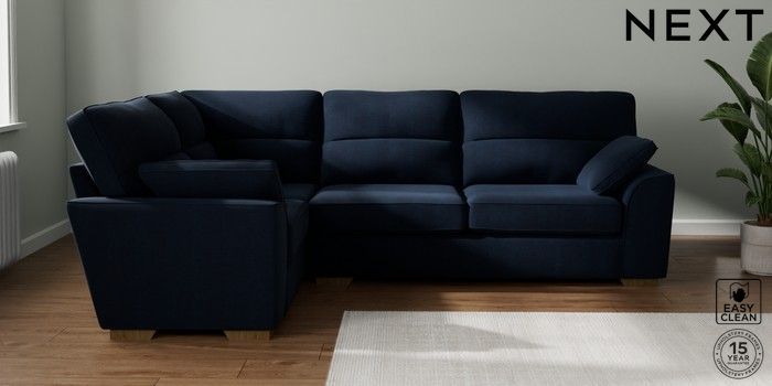 7.2.10 Stamford Highback Large Corner Sofa - Left Hand Fine Chenille Easy Clean Dark Navy Blue Large Square Angle - Mid | Made Click here to use our website with more accessibility support, for example screen readers