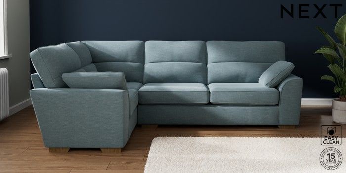7.2.10 Stamford Highback Large Corner Sofa - Left Hand Fine Chenille Easy Clean Mid Blue Large Square Angle - Mid | Made Click here to use our website with more accessibility support, for example screen readers