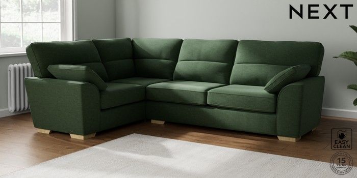 7.2.10 Stamford Highback Large Corner Sofa - Left Hand Fine Chenille Easy Clean Mid Khaki Green Large Square Angle - Light | Made Click here to use our website with more accessibility support, for example screen readers