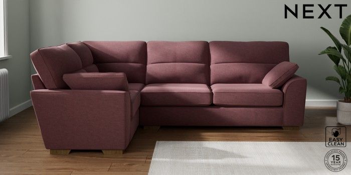 7.2.10 Stamford Highback Large Corner Sofa - Left Hand Fine Chenille Easy Clean Mid Mulberry Purple Large Square Angle - Mid | Made Click here to use our website with more accessibility support, for example screen readers