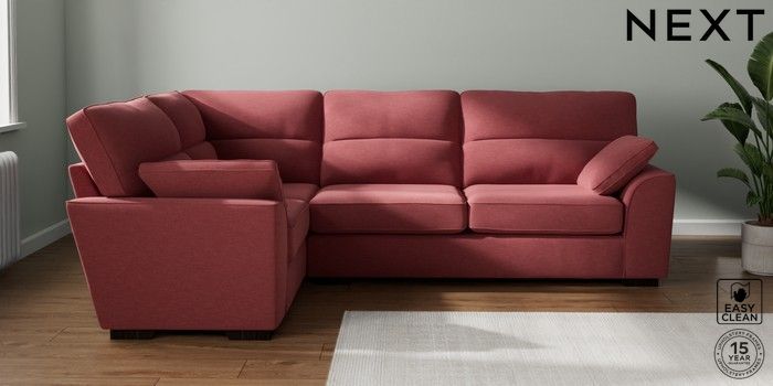 7.2.10 Stamford Highback Large Corner Sofa - Left Hand Fine Chenille Easy Clean Mid Pink Large Square Angle - Dark | Made Click here to use our website with more accessibility support, for example screen readers