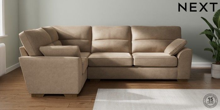 7.2.10 Stamford Highback Large Corner Sofa - Left Hand Luxe Chenille Mid Camel Beige Large Square Angle - Mid | Made Click here to use our website with more accessibility support, for example screen readers