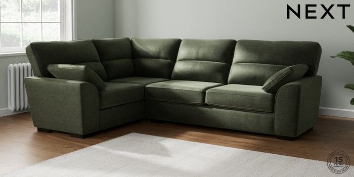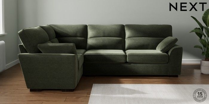 7.2.10 Stamford Highback Large Corner Sofa - Left Hand Luxe Chenille Mid Green Large Square Angle - Dark | Made Click here to use our website with more accessibility support, for example screen readers