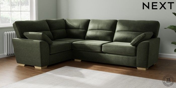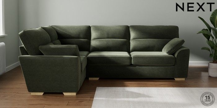7.2.10 Stamford Highback Large Corner Sofa - Left Hand Luxe Chenille Mid Green Large Square Angle - Light | Made Click here to use our website with more accessibility support, for example screen readers