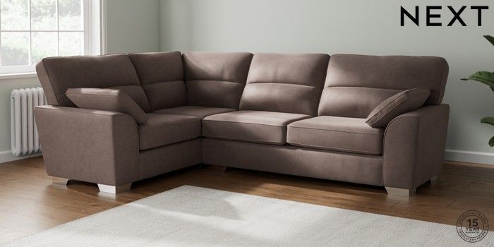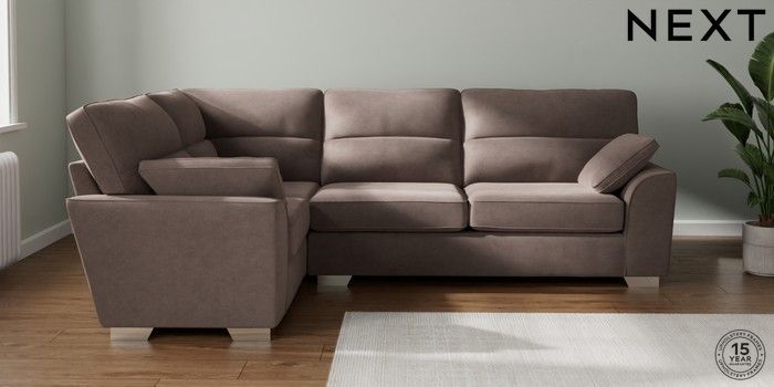 7.2.10 Stamford Highback Large Corner Sofa - Left Hand Luxe Chenille Mink Brown Large Square Angle - Chrome Metal | Made Click here to use our website with more accessibility support, for example screen readers