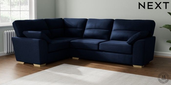 7.2.10 Stamford Highback Large Corner Sofa - Left Hand Luxe Chenille Navy Blue Large Square Angle - Light | Made Click here to use our website with more accessibility support, for example screen readers