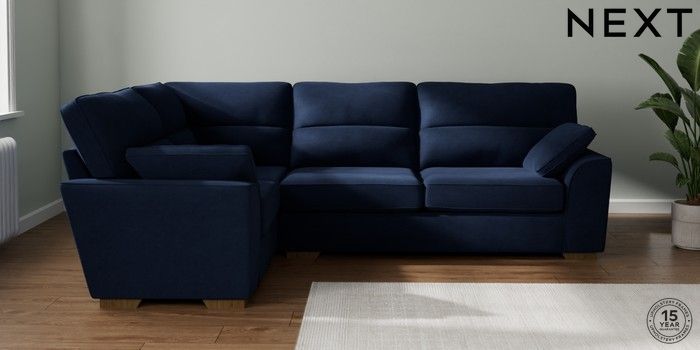 7.2.10 Stamford Highback Large Corner Sofa - Left Hand Luxe Chenille Navy Blue Large Square Angle - Mid | Made Click here to use our website with more accessibility support, for example screen readers