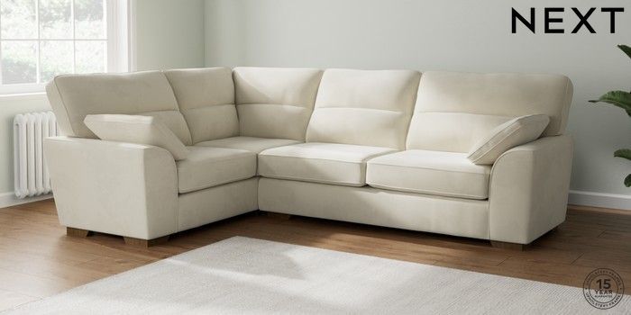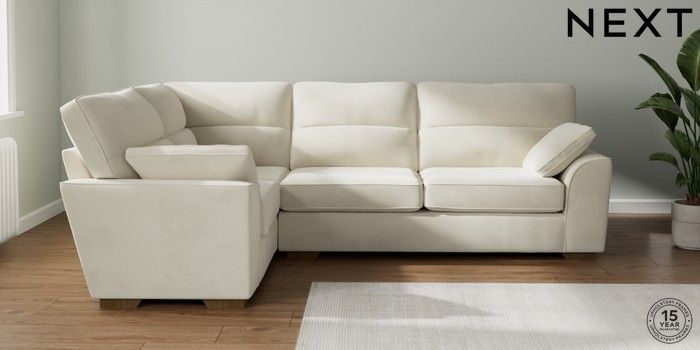 7.2.10 Stamford Highback Large Corner Sofa - Left Hand Luxe Chenille Oyster Large Square Angle - Mid | Made Click here to use our website with more accessibility support, for example screen readers