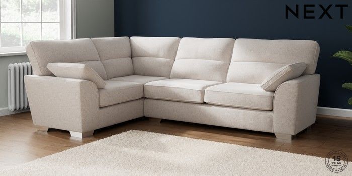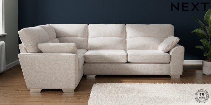 7.2.10 Stamford Highback Large Corner Sofa - Left Hand Multi Weave Oyster Large Square Angle - Chrome Metal | Made Click here to use our website with more accessibility support, for example screen readers
