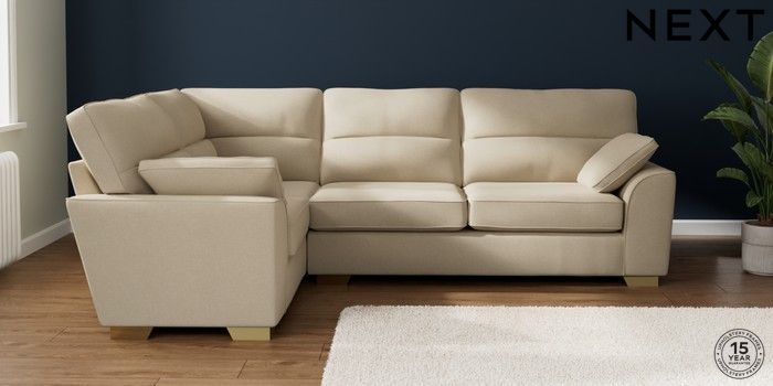 7.2.10 Stamford Highback Large Corner Sofa - Left Hand Natural Mix Light Natural Large Square Angle - Brushed Brass | Made Click here to use our website with more accessibility support, for example screen readers