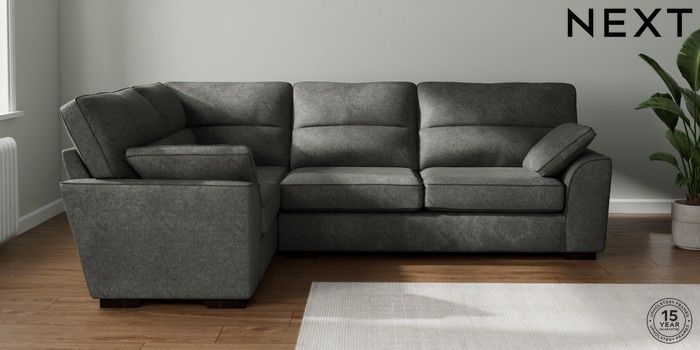7.2.10 Stamford Highback Large Corner Sofa - Left Hand Plush Chenille Dark Grey Large Square Angle - Dark | Made Click here to use our website with more accessibility support, for example screen readers
