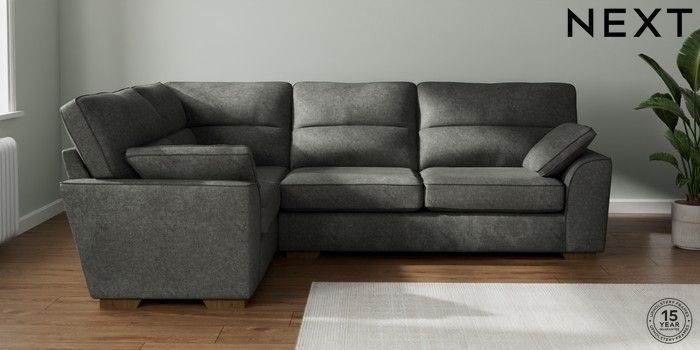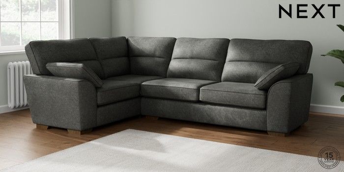 7.2.10 Stamford Highback Large Corner Sofa - Left Hand Plush Chenille Dark Grey Large Square Angle - Mid | Made Click here to use our website with more accessibility support, for example screen readers