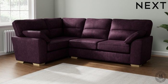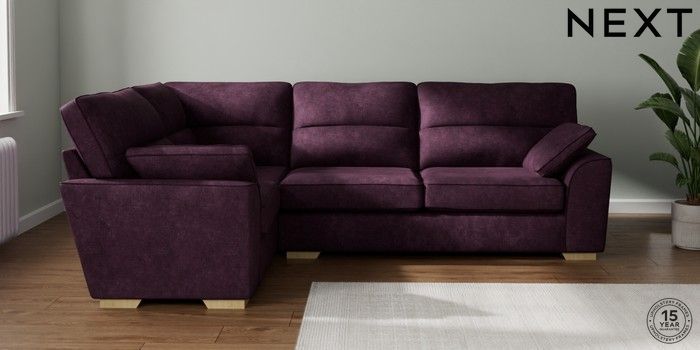 7.2.10 Stamford Highback Large Corner Sofa - Left Hand Plush Chenille Dark Plum Purple Large Square Angle - Light | Made Click here to use our website with more accessibility support, for example screen readers