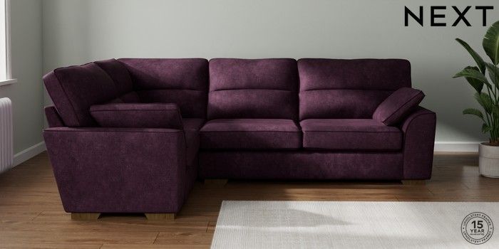 7.2.10 Stamford Highback Large Corner Sofa - Left Hand Plush Chenille Dark Plum Purple Large Square Angle - Mid | Made Click here to use our website with more accessibility support, for example screen readers
