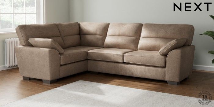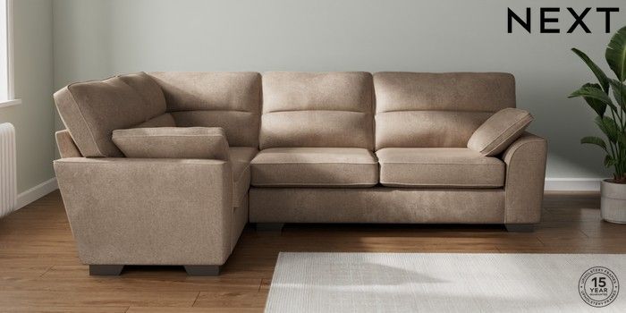 7.2.10 Stamford Highback Large Corner Sofa - Left Hand Plush Chenille Mid Natural Large Square Angle - Gunmetal | Made Click here to use our website with more accessibility support, for example screen readers