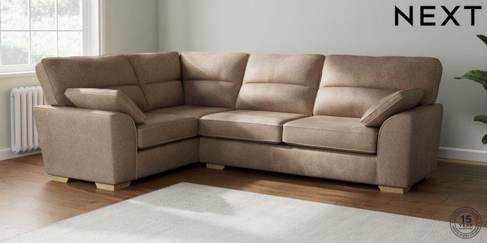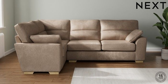 7.2.10 Stamford Highback Large Corner Sofa - Left Hand Plush Chenille Mid Natural Large Square Angle - Light | Made Click here to use our website with more accessibility support, for example screen readers