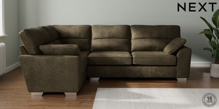 7.2.10 Stamford Highback Large Corner Sofa - Left Hand Plush Chenille Moss Green Large Square Angle - Chrome Metal | Made Click here to use our website with more accessibility support, for example screen readers