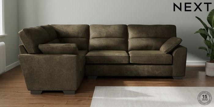 7.2.10 Stamford Highback Large Corner Sofa - Left Hand Plush Chenille Moss Green Large Square Angle - Gunmetal | Made Click here to use our website with more accessibility support, for example screen readers