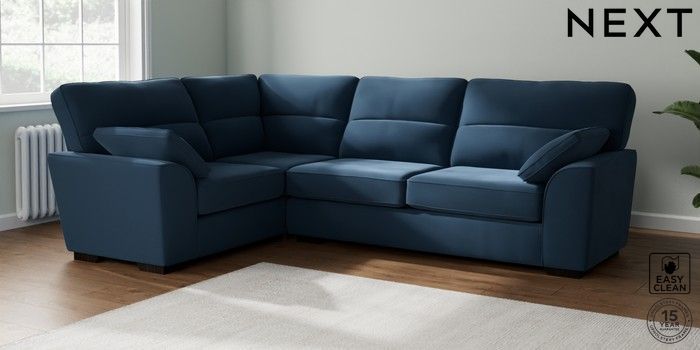 7.2.10 Stamford Highback Large Corner Sofa - Left Hand Plush Velvet Easy Clean Airforce Blue Large Square Angle - Dark | Made Click here to use our website with more accessibility support, for example screen readers