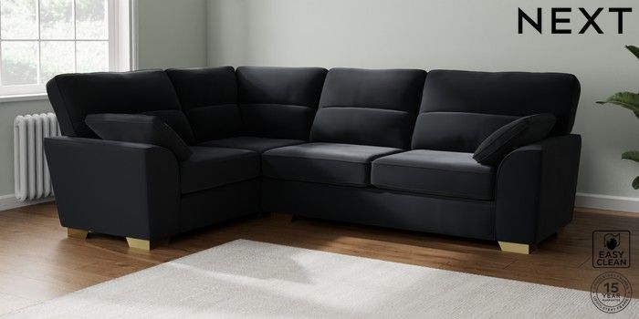7.2.10 Stamford Highback Large Corner Sofa - Left Hand Plush Velvet Easy Clean Charcoal Grey Large Square Angle - Brushed Brass | Made Click here to use our website with more accessibility support, for example screen readers