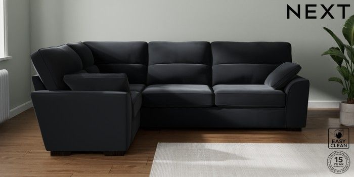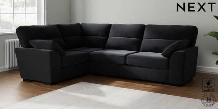 7.2.10 Stamford Highback Large Corner Sofa - Left Hand Plush Velvet Easy Clean Charcoal Grey Large Square Angle - Dark | Made Click here to use our website with more accessibility support, for example screen readers