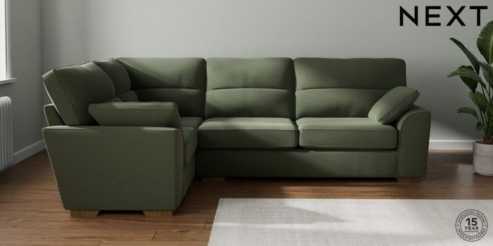 7.2.10 Stamford Highback Large Corner Sofa - Left Hand Relaxed Linen Look Dark Green Large Square Angle - Mid | Made Click here to use our website with more accessibility support, for example screen readers